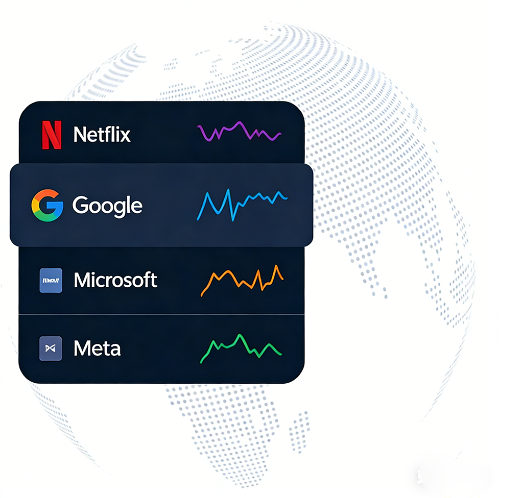 您可以透过我们的交易平台,买卖在纽交所、纳斯达克和港交所等交易所上市的大型公司的股票,并且没有传统股票交易相应的费用或束缚。